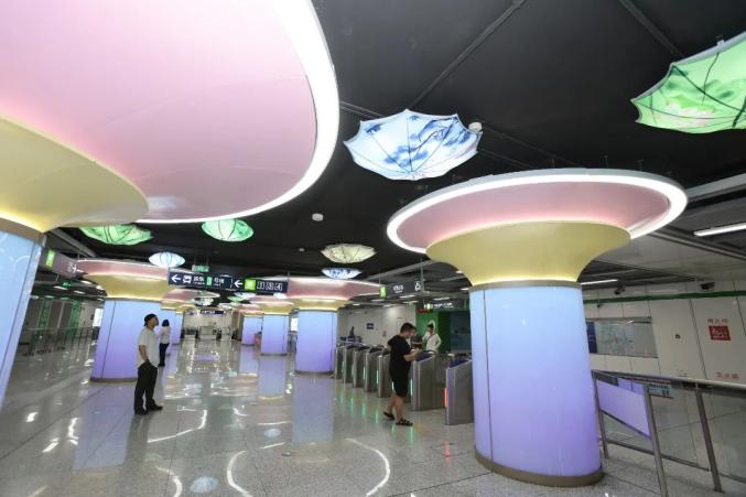 地铁5号线五台山站位于市中心区域,不仅周边建筑非常密集,地下管线也错综复杂。在站点建设过程中可利用空间狭小,施工难度较大。为确保车站建设顺利进行,南京地铁开展多轮方案研究,最终确定采用站台上下叠落的方案。为确保上行、下行区间盾构安全掘进,过程中采用了先下后上的施工顺序,并通过钢管、钢架等各种措施加强结构强度。这种叠落式车站的形式在全省首次使用,极大减少车站的占地空间,方便市民出行。