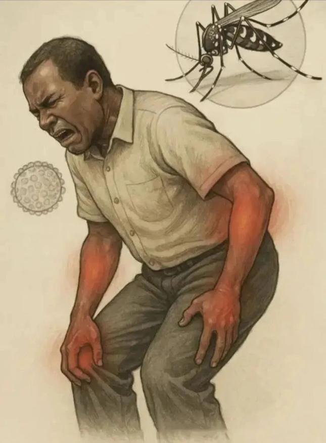 基孔肯雅热的主要传播媒介之一:埃及伊蚊。因病毒最早在非洲坦桑尼亚被发现而得名,在当地语言中,“基孔肯雅”意为“变得扭曲”或“弯腰驼背”,形容患者因剧烈关节疼痛而被迫蜷缩身体的姿态。这也反映了其最典型的临床症状,就是关节疼痛导致身体蜷曲。