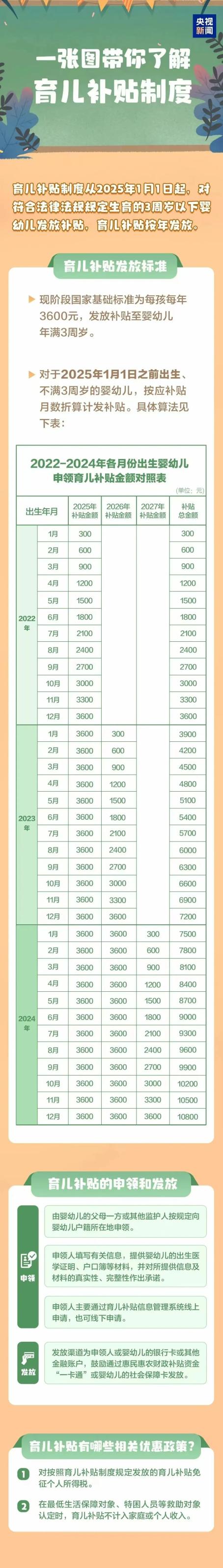今年1月1日起,每孩每年发放育儿补贴3600元,至其年满3周岁。《国家育儿补贴制度实施方案》日前公布,不分一孩二孩三孩,许多家庭都能享受到这项全国性、普惠式的经济补贴。