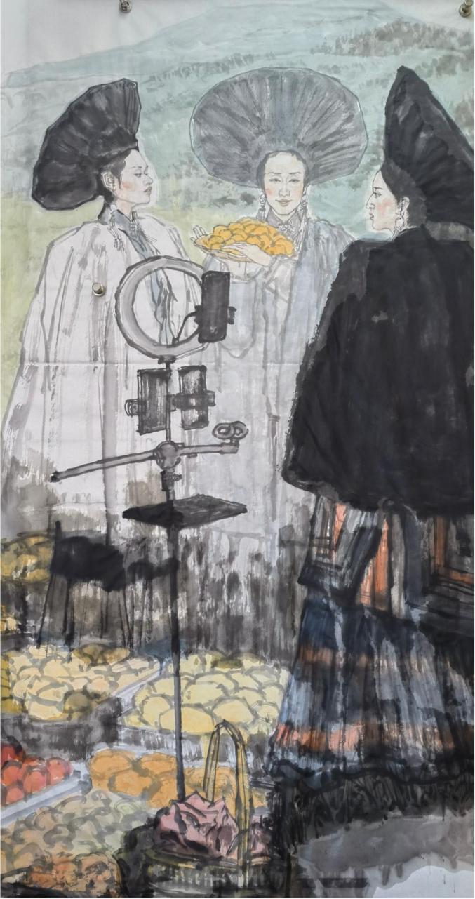 吕国钢作品《山村直播中》原标题:《“笔墨春秋 薪火相传”全国美术作品展在京开展 浙江4名党员作品入展》