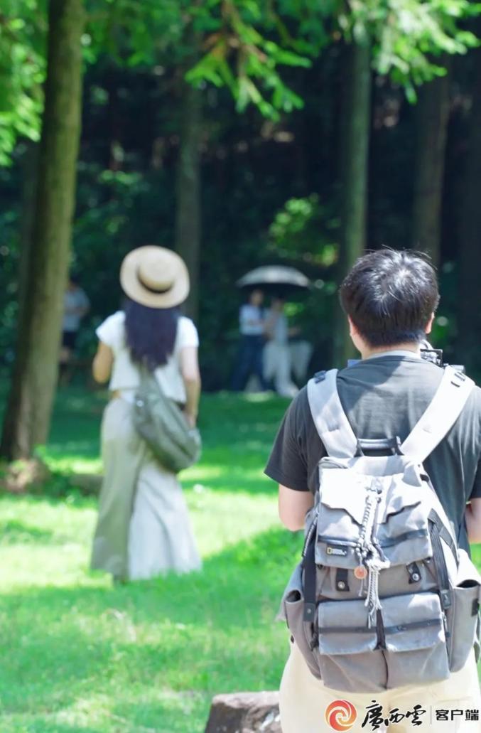 采风团成员正在姑婆山旅游度假区拍摄。实习生 何泽昊 摄姑婆山被誉为“华南地区最大的天然森林氧吧”,地处湘、桂、粤三省区交界处,横跨广西贺州与湖南江华等地,其核心景区主要分布在广西贺州市境内,总面积达8000公顷,森林覆盖率高达85%,年均气温18.2℃,冬暖夏凉,空气负离子含量最高达每立方厘米15.6万个,宜人环境让人沉醉。