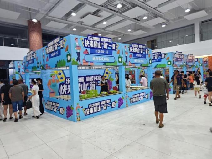 活动现场,“乐动田园 葡香共富”集市一派热闹景象。在现代化的葡萄农事服务中心,大厅里展陈了来自浦江15个乡镇(街道)的共富特产和非遗产品以及黄宅明星企业的特色产品,众多游客纷纷驻足观赏、品尝和购买,现场热闹非凡。此次葡萄园音乐会不仅是“万年上山·诗画浦江”国风音乐周的组成部分,同时也是“2025乐动田园·葡香共富”主题活动的核心亮点之一。活动期间,园区特别设置水上表演区、亲子互动区、美食烧烤区等多个功能板块,并推出吃葡萄大赛、猜歌名赢葡萄、葡萄知识问答等趣味互动环节。通过“艺术+文旅”的创新融合模式,系列活动将高雅艺术引入乡村场景,让国风音乐在自然田园中焕发新活力,为游客打造了沉浸式文旅体验。
