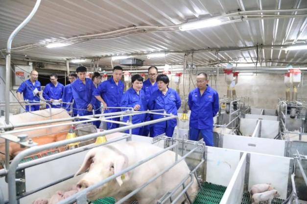 彭健教授(右二)在猪场调研(魏宏逵 供图)该技术由华中农业大学动物科学技术学院、动物医学院彭健教授等主导,致力于解决母猪营养供给不精准,导致妊娠期饲料消耗多,母猪体况肥和繁殖性能低。目前,该技术已在全国13省市推广,应用1010万母猪,母猪每胎节本节本62~175元,多提供仔猪0.5头以上。