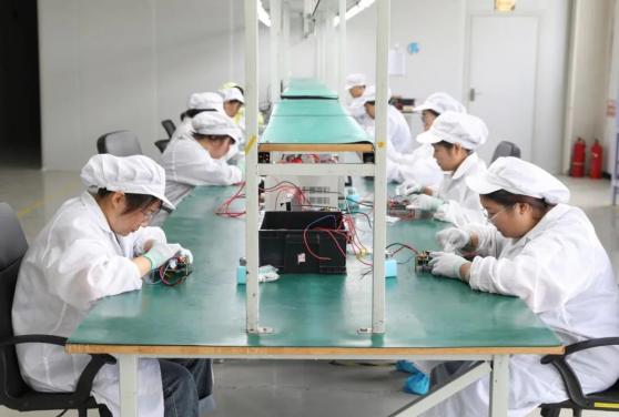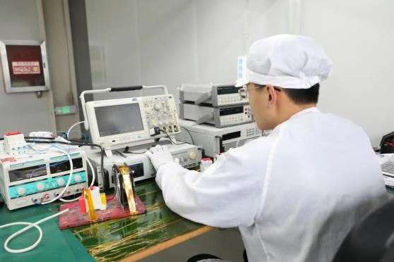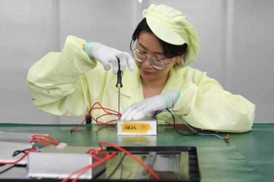河北滦南县唐山航宇未来科技有限公司的生产车间内,工人正在进行电源测试。