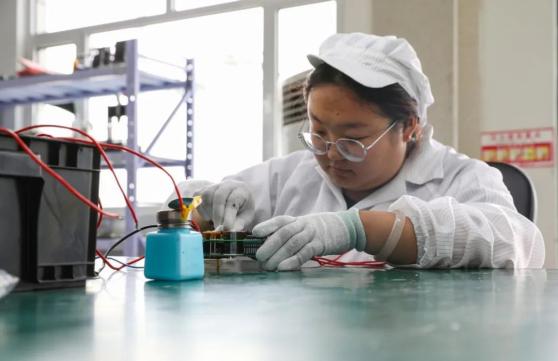 河北滦南县唐山航宇未来科技有限公司的生产车间内,工人正在组装磁性元器件。