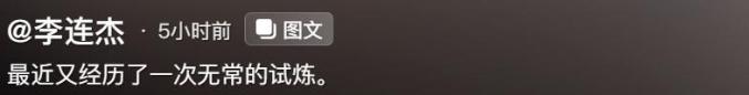 今天(8月17日),李连杰的认证社交媒体账号更新图文,文字写道“最近又经历了一次无常的试炼。”