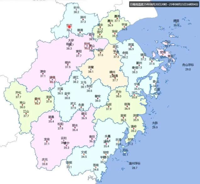 高温肆虐,截至16时,杭州最终以39.3℃的成绩稳稳地拿下今日我省最高气温榜首,建德、衢州39.1℃并列第二。