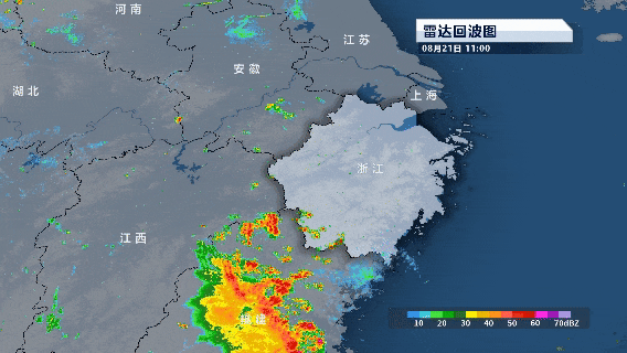 受午后对流影响,过去3小时(12时-15时),丽水、衢州、杭州南部、绍兴东部、金华东部、温州南部、台州西部、宁波等地局部出现短时强降雨和雷暴大风天气,累计雨量共10个站超过50.0毫米,累计雨量最大为庆元县蔡地村80.5毫米,小时雨强最大出现在庆元县白岩下77.5毫米,共有30个站出现8级以上雷暴大风,最大为嵊州市普安23.7米/秒(9级,海拔37米)。16时常山出现直径1-2厘米冰雹。