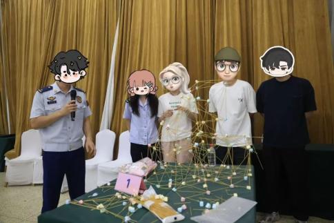 活动伊始,“财税蓝”与“迷彩绿”专属签到区便营造出浓厚的双拥氛围。简短合影后,一场别开生面的破冰行动迅速拉近距离——在“跨越系统握手”环节,青年们随指令穿梭换位,与新伙伴热情握手并简短介绍,欢声笑语中陌生感悄然消融。联学联建工坊内,“财税蓝撞上迷彩绿”趣味竞答,国防与财税知识交融;“合力筑塔”环节,小组用棉花糖和意面协作搭塔,分享表演欢笑不断;陶艺DIY工坊中,青年体验传统工艺,共创独特作品。多元活动增进彼此理解,凝聚深厚情谊。
