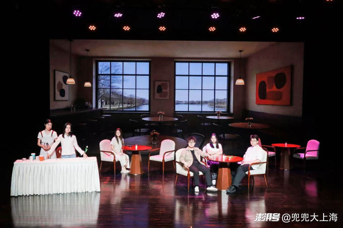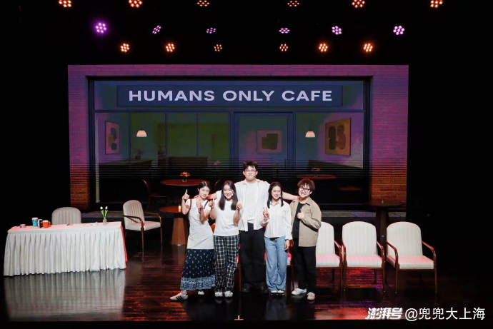 八月的上海热浪滚滚,宛平剧场的舞台灯光却比盛夏更灼热。当17岁的郭清钰站在侧幕条后,看着演员们在台上念出她写的台词——“在这个世界,连心跳都可能是代码模拟的……”她突然意识到,自己利用暑假五天时间完成的“疯狂计划”,这部讲述着2045年AI时代如何寻找真情的《仅限人类咖啡馆》(《Humans Only Cafe》)原创英文话剧, 真的正式演出了。