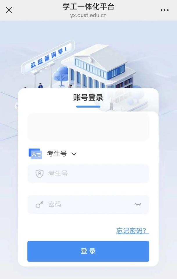 登录方法一:用微信扫描下方二维码,关注微信公众号“青科学工”,点击“办事大厅”--“迎新系统”,登录迎新系统。