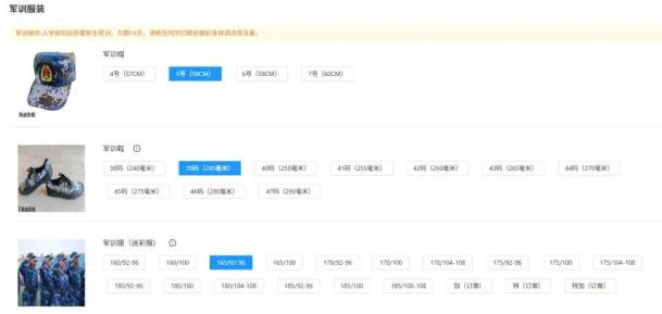 选取军训服装本科新生入学报到后即要集中军训,为期14天,请本科新生同学们提前做好身体调适等准备。同时根据个人实际选择合适尺码的军训服。