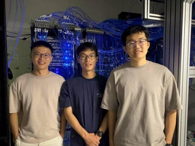 图4:浙江大学超导量子计算团队部分成员。共同通讯作者郭秋江(左),共同一作金非童(中),共同一作朱旭浩(右)