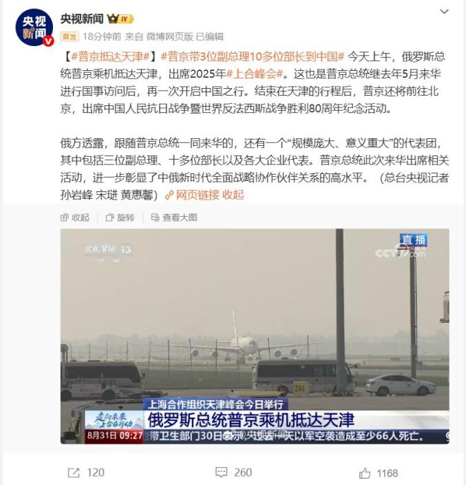 现场视频!普京带3位副总理10多位部长,已抵达天津