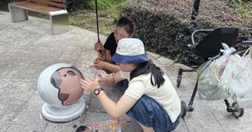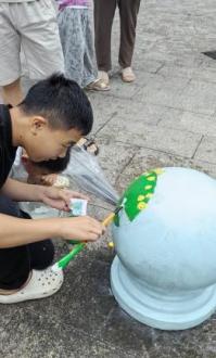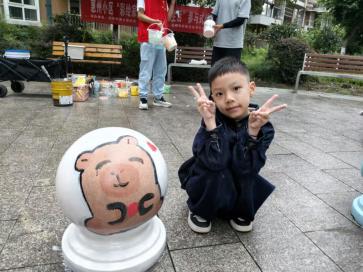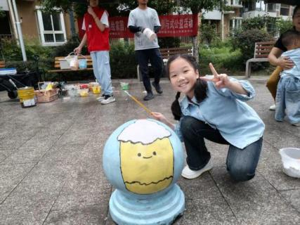 彩绘过程中,亲子家庭携手共创,孩子们手持画笔,在石墩上仔细勾勒出心中的图案,家长们则在一旁耐心指导,协助调色、递工具,共同享受这温馨的亲子时光。邻里之间也相互交流绘画技巧,分享创意想法,欢声笑语回荡在小区。在大家的巧手下,原本灰扑扑、毫不起眼的石墩逐渐披上了绚丽多彩的“外衣”,现场气氛十分温馨。
