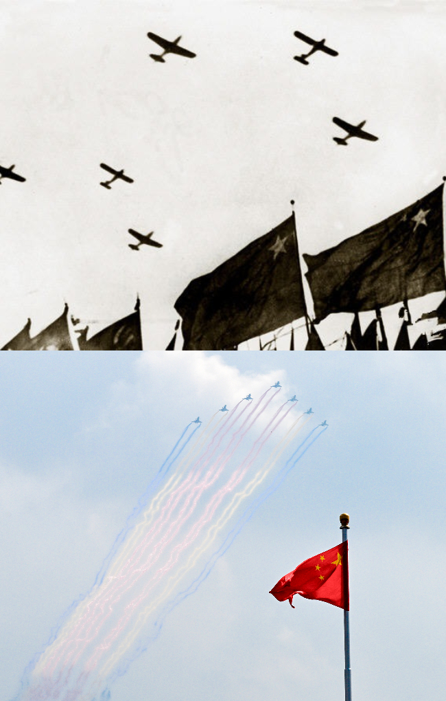 1949年10月1日,飞行中队参加开国大典空中受阅。中国军网 图