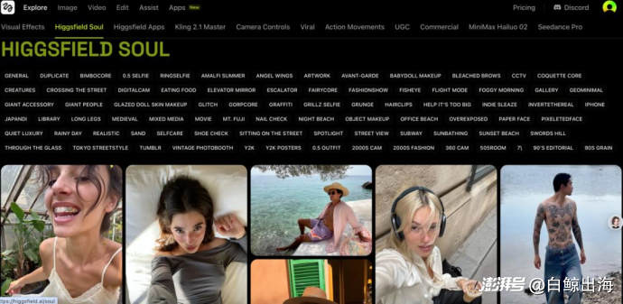 Higgsfield Soul板块,数十种风格预设|图片来源:官网