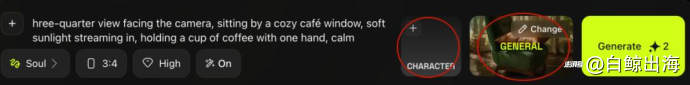 产品在 UI 设计上也给到了用户很明确的引导,例如,角色训练好之后,点击生成,就会引导用户进入 Soul 生图流程,用户界面底部的“角色”+“风格滤镜(预设)”2 个按钮,帮助用户一下子 get 到产品的核心玩法。