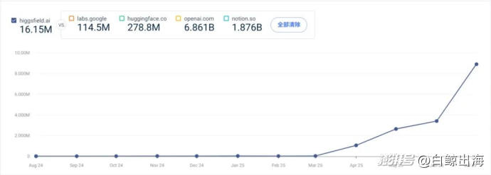 Higgsfield 近一年的访问量数据|图片来源:SimilarWeb