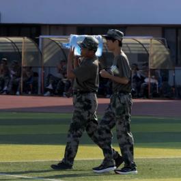 处理:若训练时出现头晕、心慌、额头冒冷汗等中暑症状,立即向教官举手报告,迅速转移至阴凉处休息并适量饮用淡盐水或藿香正气水,若症状加重(如呕吐、意识模糊),请立即联系校医。