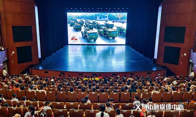 在义乌市文化广场剧院,市民集中收看阅兵仪式观大会 心潮涌