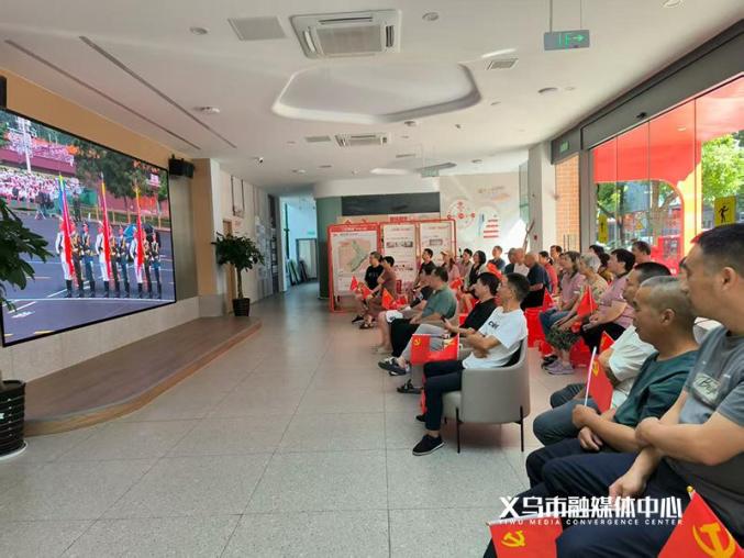 稠城街道下车门社区居民收看大会直播当日上午,稠城街道绣湖社区党群服务中心一楼大厅内红旗飘扬,来自辖区的居民代表、党员代表、退役军人代表、教师代表和学生代表等50余人齐聚一堂,共同收看大会直播。大会结束后,大家纷纷畅谈感想。退役军人代表表示要继续发挥余热,为社区建设贡献力量;教师代表表示要将今天的感悟融入课堂教学,引导学生铭记历史、珍惜和平;居民代表分享了对社区美好生活的感受。社区党委书记龚志成感慨道:“阅兵场面震撼,令人振奋!让我更加深刻地认识到,要牢记历史、珍惜和平,狠抓当前、奋发图强。我将立足本职工作,把这份激情带到基层党建工作中,推动党组织更好地服务群众、凝聚人心。”
