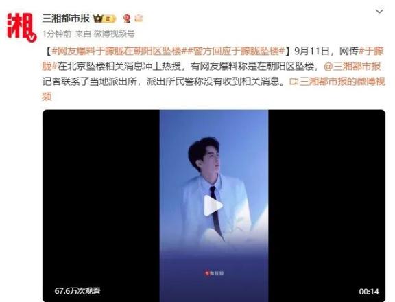 37岁男演员于朦胧被传坠楼,7月刚注销工作室,警方回应