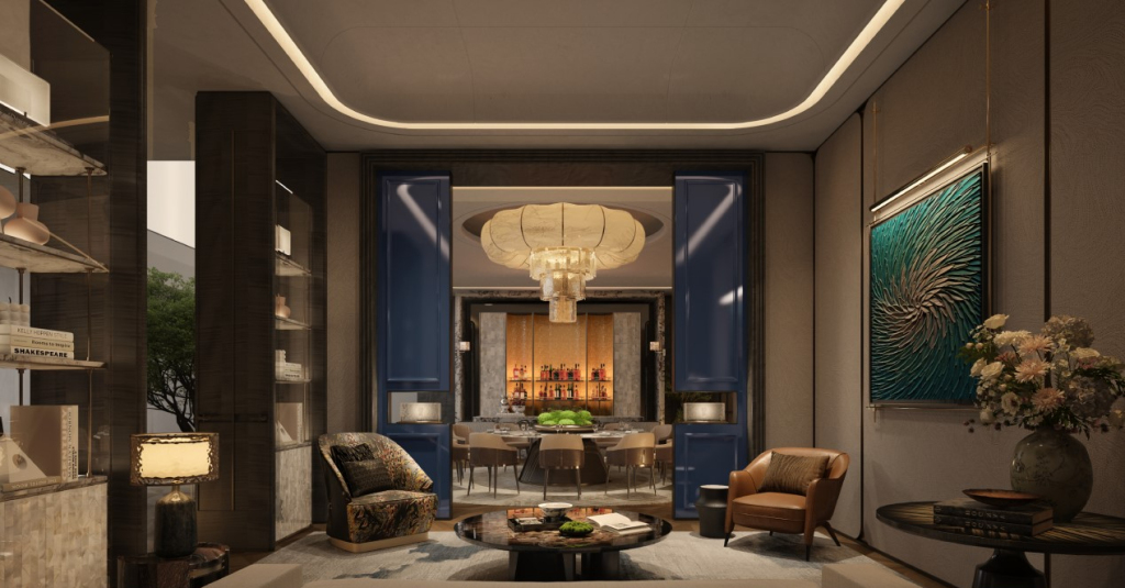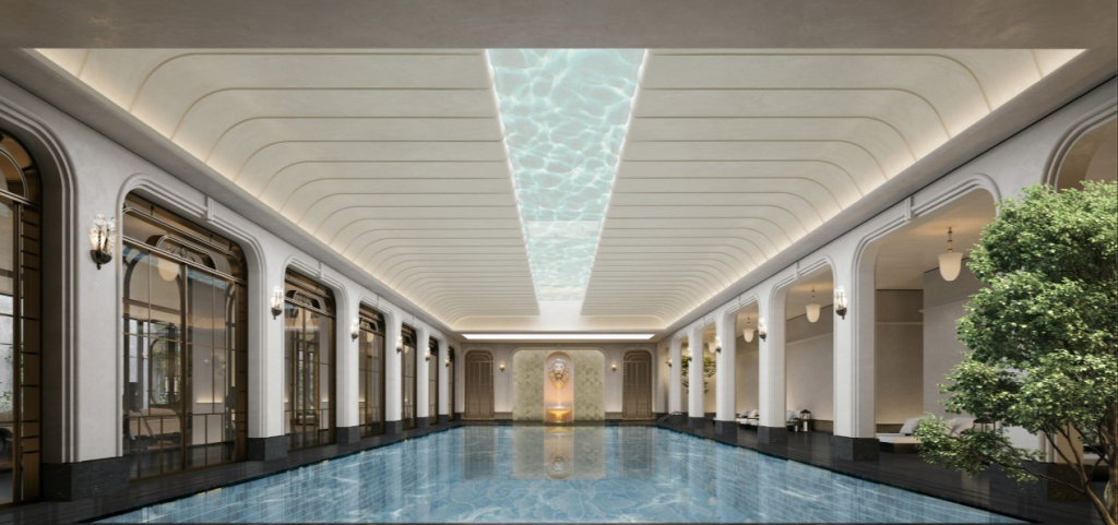 臻园风景与会所情景交融,逸趣与摩登共鸣,约4200㎡高定摩登会所,围绕两大主题定制十大功能场景,配齐度假式恒温泳池、无界瞰景私宴厅、专业级健身房、红酒雪茄室、影音室、下午茶室等主题场域。