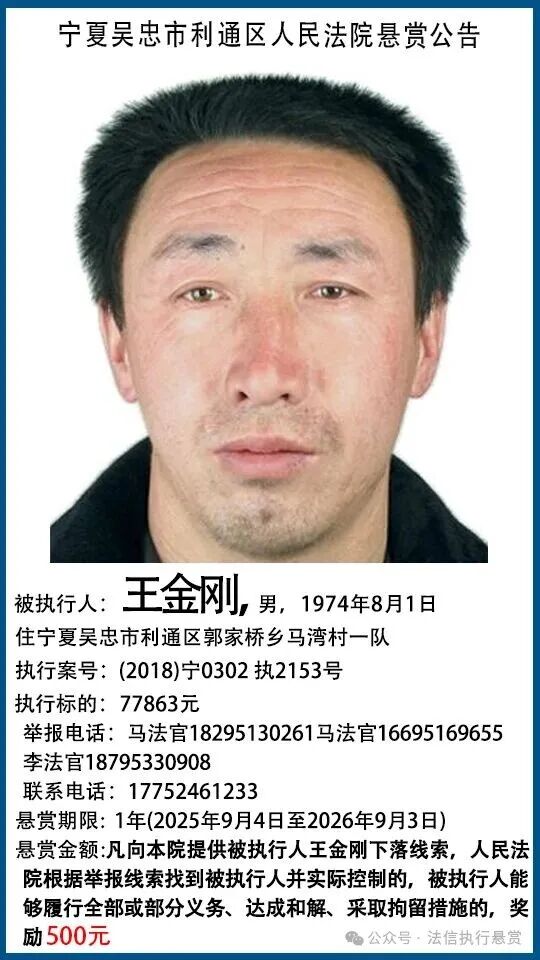 原标题:《吴忠市利通区人民法院悬赏公告(2025年第三十三期)》