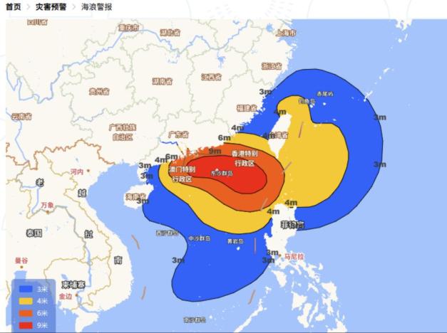 国家海洋预报台9月23日08时发布海浪红色警报:受今年第18号台风“桦加沙”(超强台风级)的影响,预计:9月23日上午到24日上午,南海北部将出现8到13米的狂浪到狂涛区,台湾海峡南部、巴士海峡将出现4到6米的巨浪到狂浪区,近海海域海浪预警级别为橙色;广东近岸海域将出现4到7米的巨浪到狂浪,该近岸海域海浪预警级别为红色。