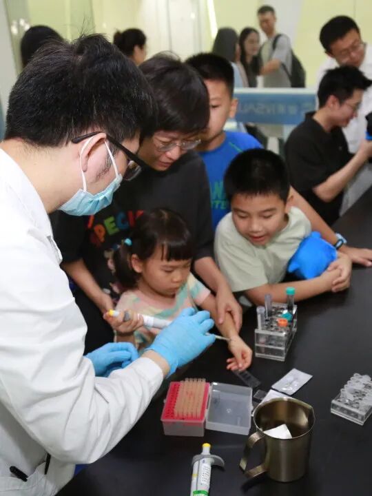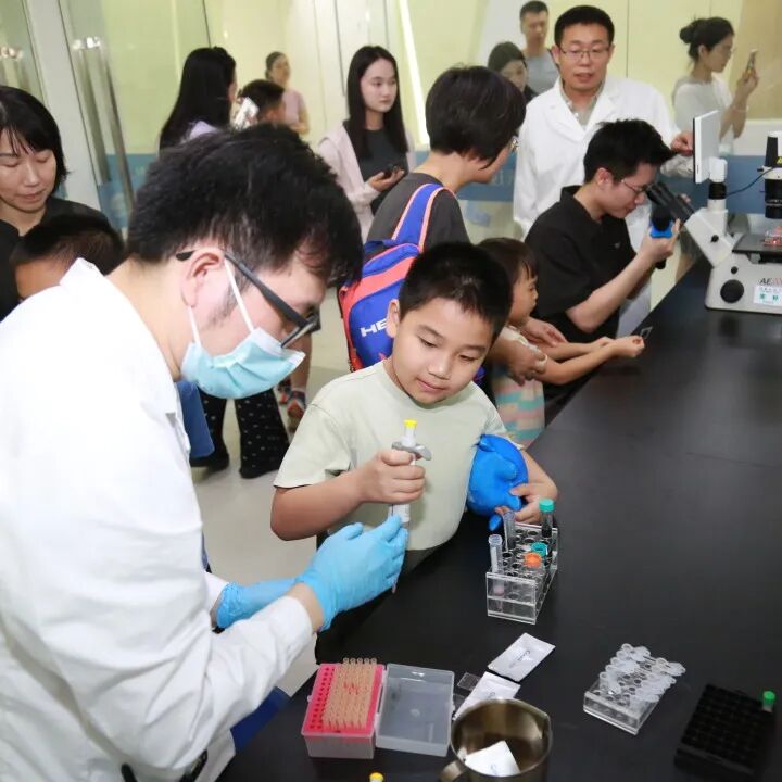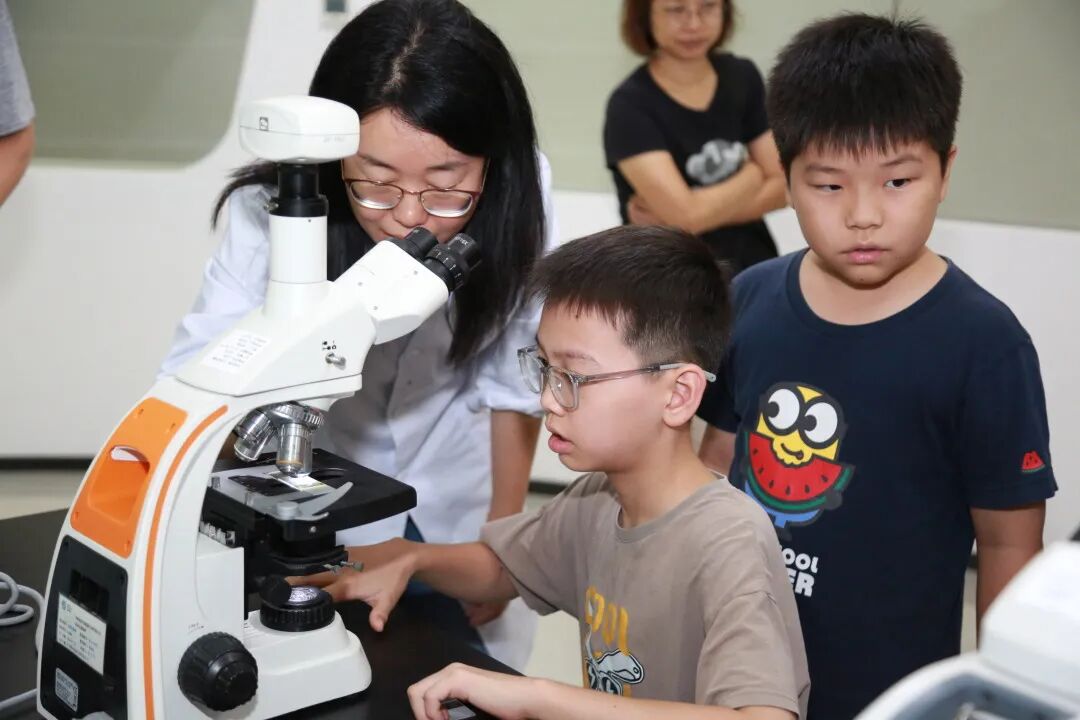 讲座结束后,孩子们在博士科研人员的带领下走进实验室,亲手操作显微镜观察植物细胞,并用移液枪完成细胞染色。通过颜色变化,细胞活性一目了然。这一刻,微观世界的大门向他们敞开,科学的种子悄然萌芽。