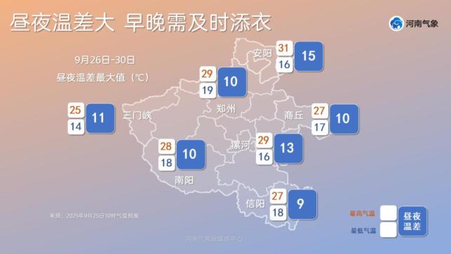 预计今后五天,我省最高气温相对平稳,基本稳定在25℃上下,最低气温15℃左右,昼夜温差逐渐增大,尤其是在30日,昼夜温差多地可超10℃。建议大家及时关注气温变化,适时调整着装,谨防感冒。