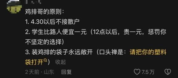 这并不是“鸡排哥”的第一次爆火,或许也不会是最后一次。互联网时代下的流量终将褪去,但他的真诚和用心会留下永恒的记忆,终将沉淀为最好的口碑。