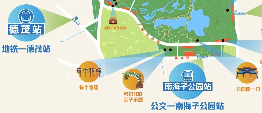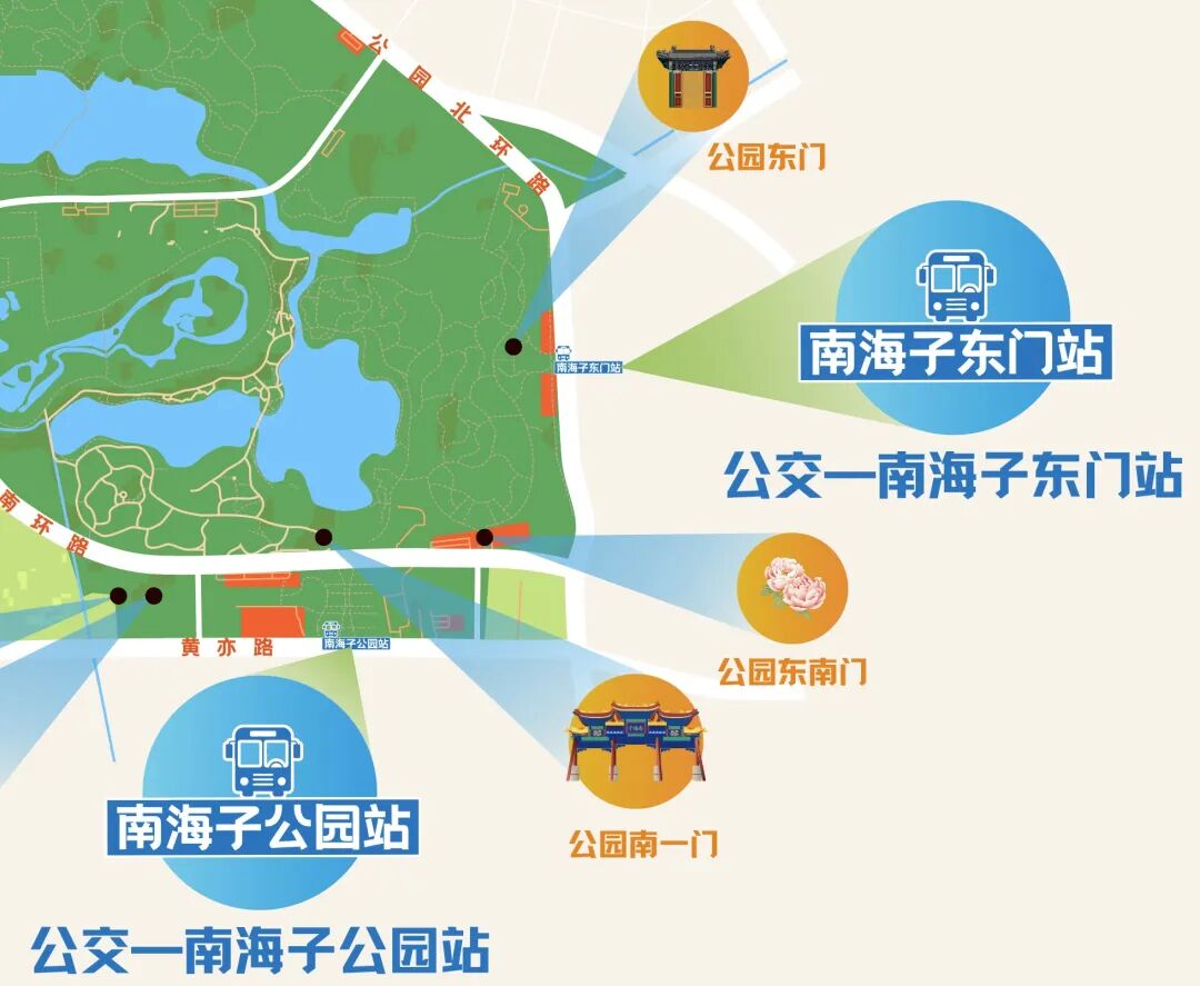 若您计划国庆初秋全家出游,打卡麋鹿苑、与秋日生灵温柔邂逅,或是体验游湖划船、饱览碧波秋景的乐趣,推荐从南囿园(原公园一期)的南一门、中心路门入园;奔赴南海子“有个牧场”露营区、考拉100亲子乐园、共度欢腾假日时光的游客,也能在此开启充实的秋日家庭之旅。建议走公园南环路选择1、2号停车场。