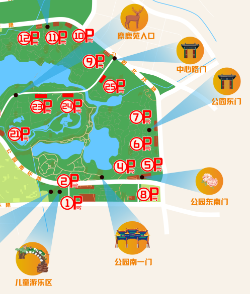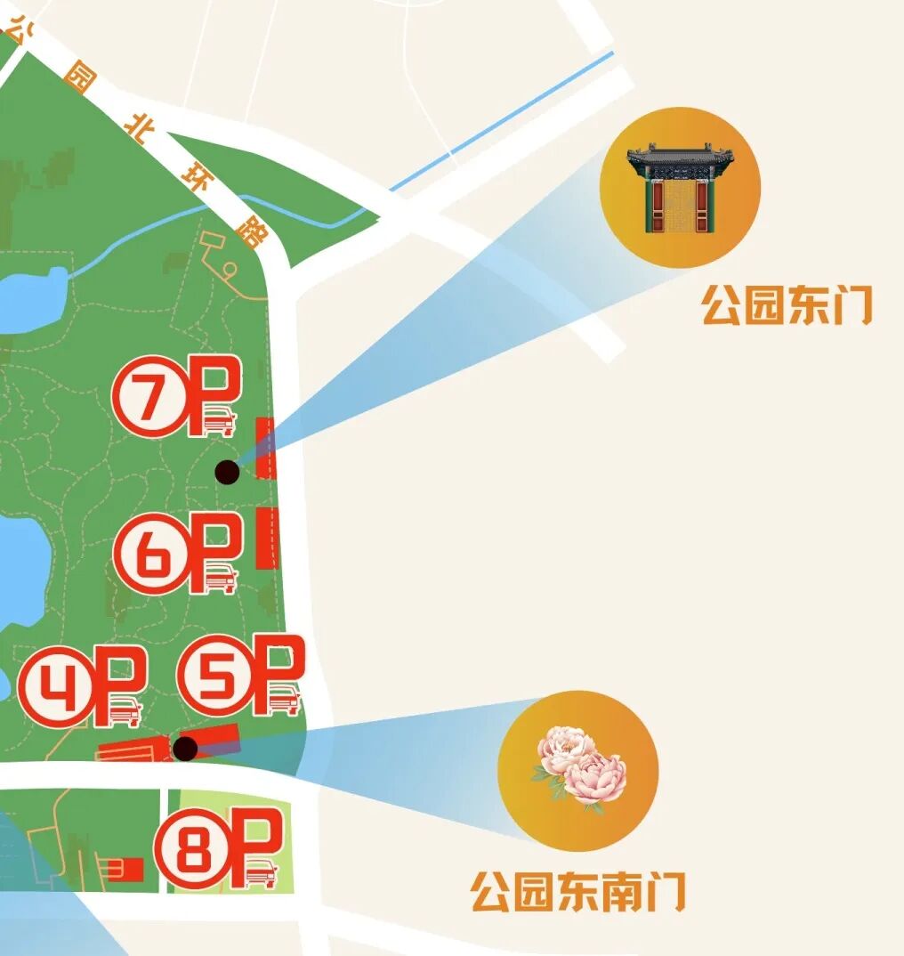 ·驾车:公园南环路、公园北环路选择4、5、6、7、8号停车场。