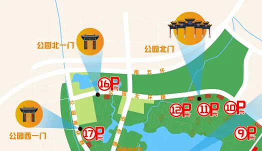 ·驾车:公园南环路、公园北环路,选择10、11、12、16、17号停车场。
