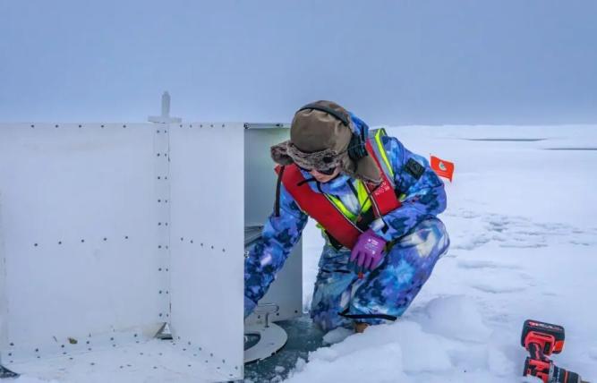 使用光谱辐射计测量海冰反射特性本航次在北冰洋中央区顺利完成 “空-天-冰-海-潜” 综合观测试验,从智能航线规划到作业任务调度,再到冰区作业空天实时保障,持续提升我国智能化科考能力。现场调查初步显示,冰下中小尺度海洋过程加剧了垂向物质与能量交换,与海冰减少共同促进中央区上层海洋生态系统发展,为深入理解北冰洋气-冰-海相互作用和环境变化机理提供重要科学支撑。
