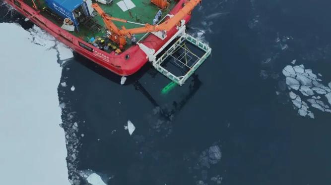 “悟空”无人潜航器在冰区月池导引出水除了具体的作业内容,船长姜长松、临时党支部书记、中山大学冯伟教授等还讲解了极地安全航行和船舶保障,为同学们全面展示了一个北极科考航次的全貌。