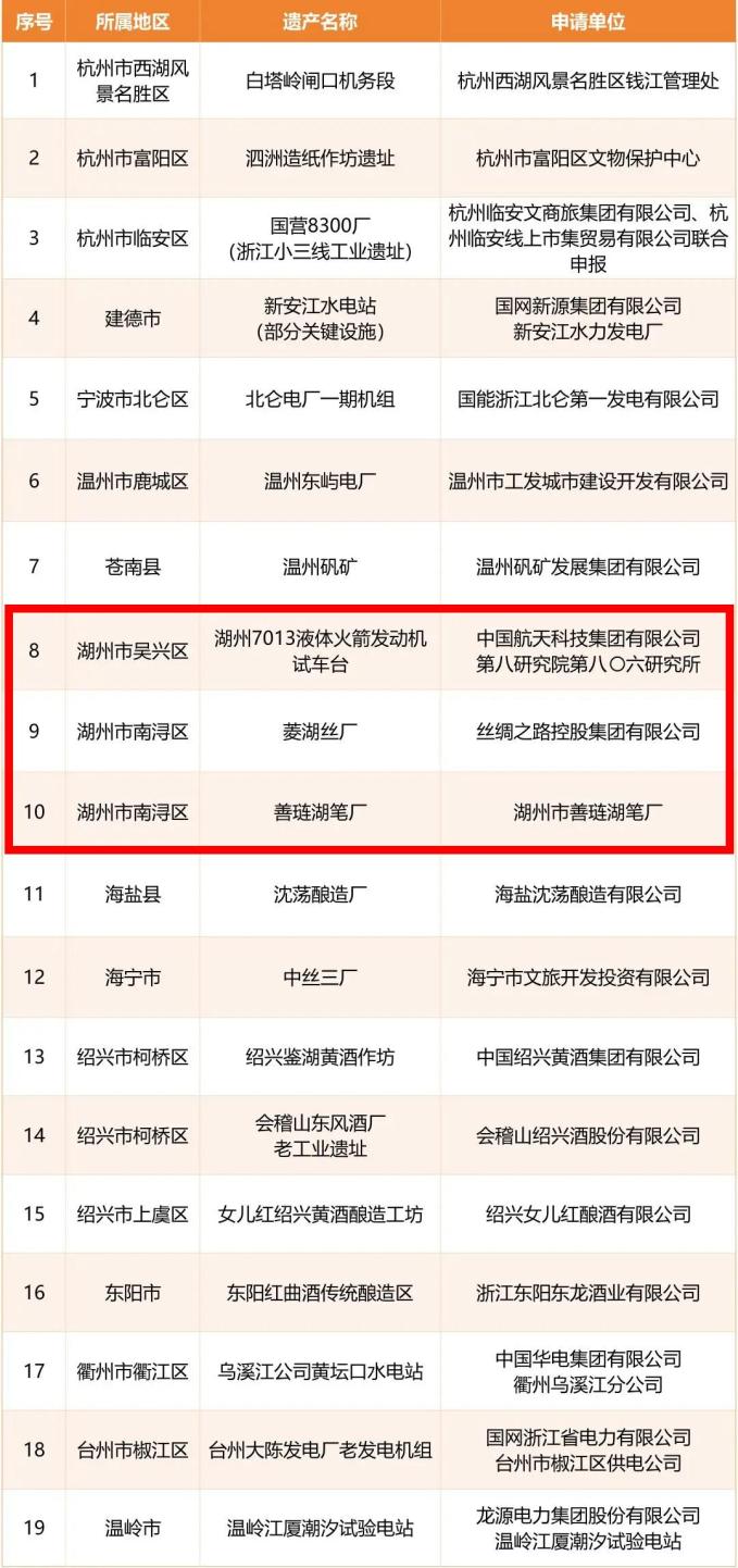 浙江省工业遗产,湖州+3