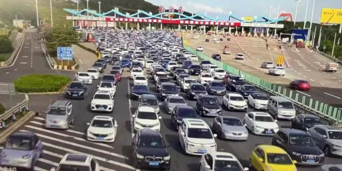 10月7日下午,南宁东收费站回城车流量大。交管部门供图据南国早报消息:10月7日,国庆、中秋假期临近结束,广西高速公路迎来返程车流,G72泉南高速公路兴六互通、G75兰海高速都安往南宁等方向出现了缓行路段,有的路段缓行长度约3公里。