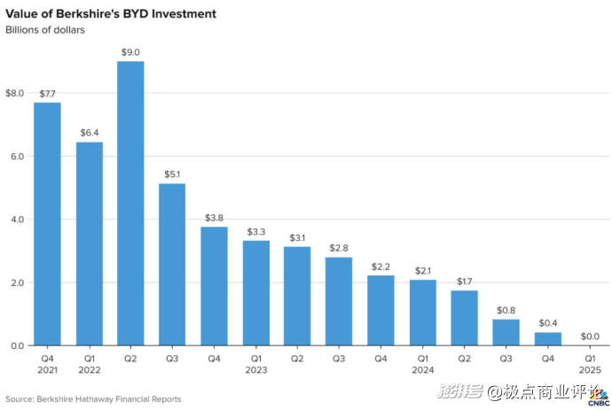 而伯克希尔·哈撒韦在其第一季度的财务文件中称,截至今年3月31日,公司对比亚迪的这笔投资,价值列为0.0。