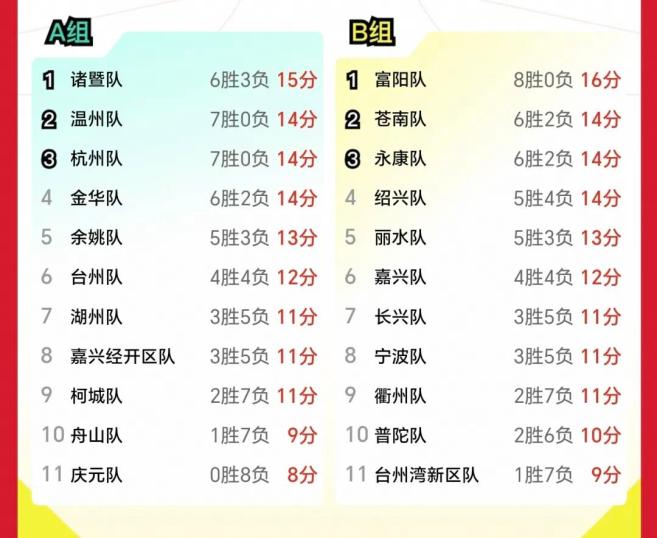 凭借这波胜势,金华队当晚以6胜2负的战绩,小组排名冲至前四。