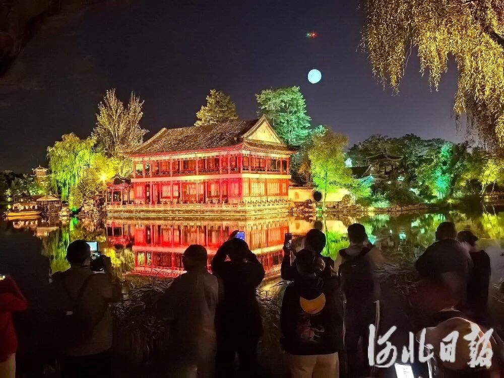山庄升明月,园林诗意浓。“夜间的山庄特别有韵味,好像走进了历史画卷。”外地游客张存志等人表示。记者了解到,承德避暑山庄新增26处新业态及夜游项目,打造沉浸式游园体验,消费吸引力十足。元宝山下的《鼎盛王朝·康熙大典》,以奔腾的战马、次第点亮的千盏宫灯,以“演出+”构建出一场科技与自然交融的实景大戏。