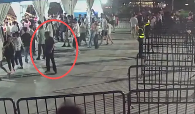 10月9日晚,上海体育场,刘某推人进场失败后欲逃离现场。本文图片均由 上海徐汇警方 提供