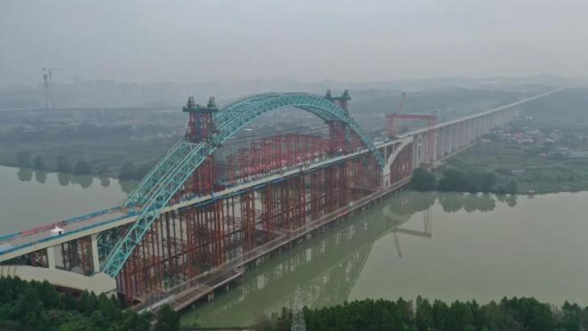 近日,随着最后一个拱肋环口焊接完成,成渝中线高铁四川段控制性工程——沱江特大桥主拱成功合龙,标志着大桥主体结构建设取得重大进展,为后续桥面及轨道施工奠定了坚实基础。