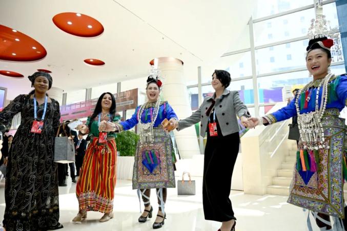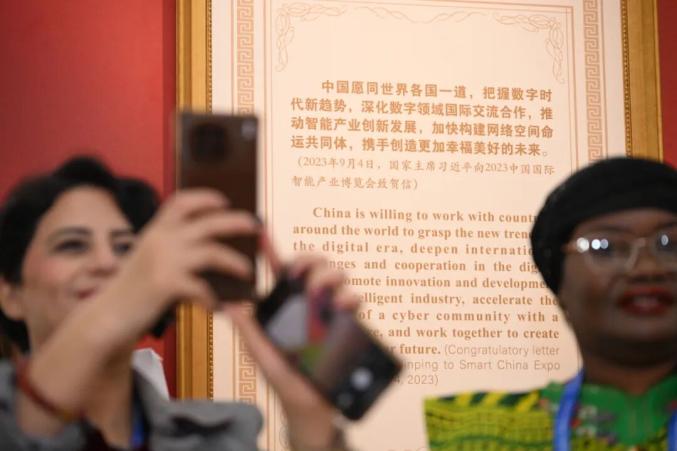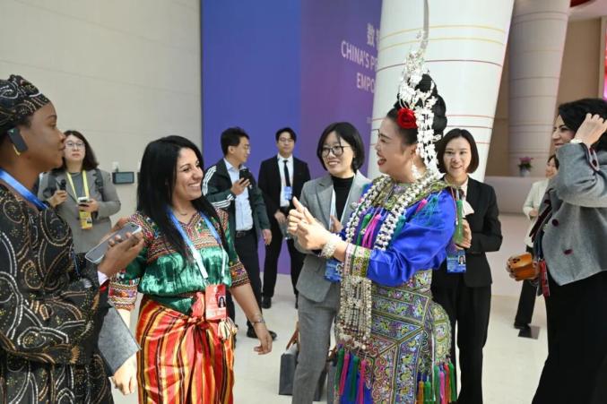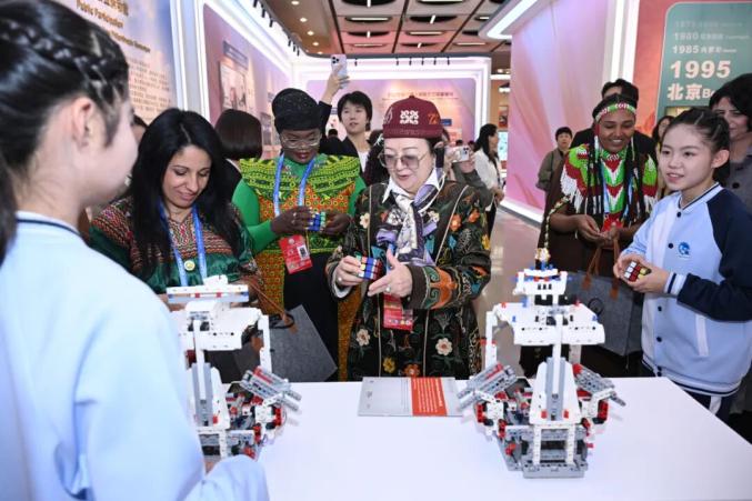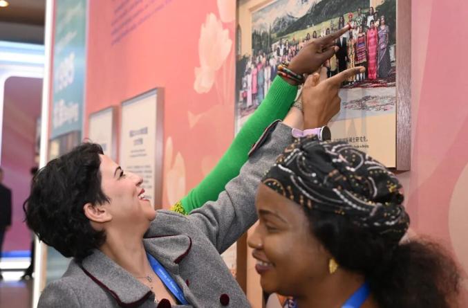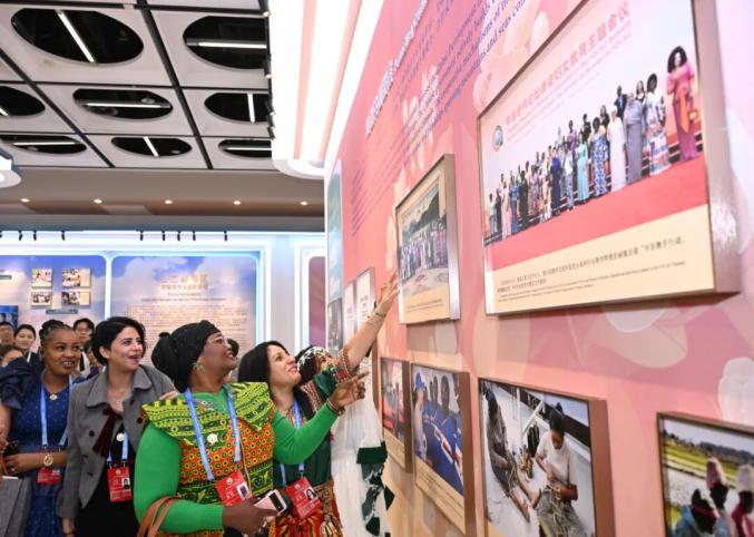 与会嘉宾观展。本次展览以“数智赋能:平等、创新、共享、发展”为主题,集中反映中国在制度保障、科技创新、文化传承、公益参与以及全球行动中,通过数智赋能妇女和女童发展取得的实践成果,彰显中国式现代化的勃勃生机,展示中国促进男女平等和妇女全面发展的积极行动,推动妇女走在数字化发展前列,促进数字领域性别平等国际合作,为推动全球妇女事业发展贡献中国方案。