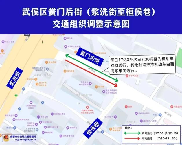 关于调整武侯区黉门后街(浆洗街至桓侯巷)交通组织的通告