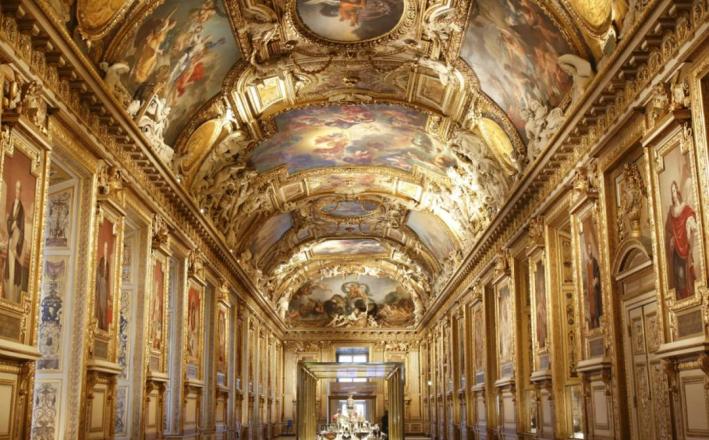 阿波罗长廊 卢浮宫网站卢浮宫网站介绍,以“太阳王”自居的路易十四通过阿波罗长廊首次将王权与太阳神阿波罗联系在一起。路易十四召集当时最顶尖的艺术大师,以精美绝伦的绘画、雕塑和镀金装饰,创作出绚丽夺目的建筑内饰杰作。如今,阿波罗长廊主要展出法国宫廷的珠宝与钻石藏品。