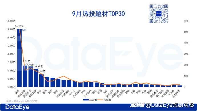 3、9月热投题材:男频题材热度攀升,“真假千金”元素火热