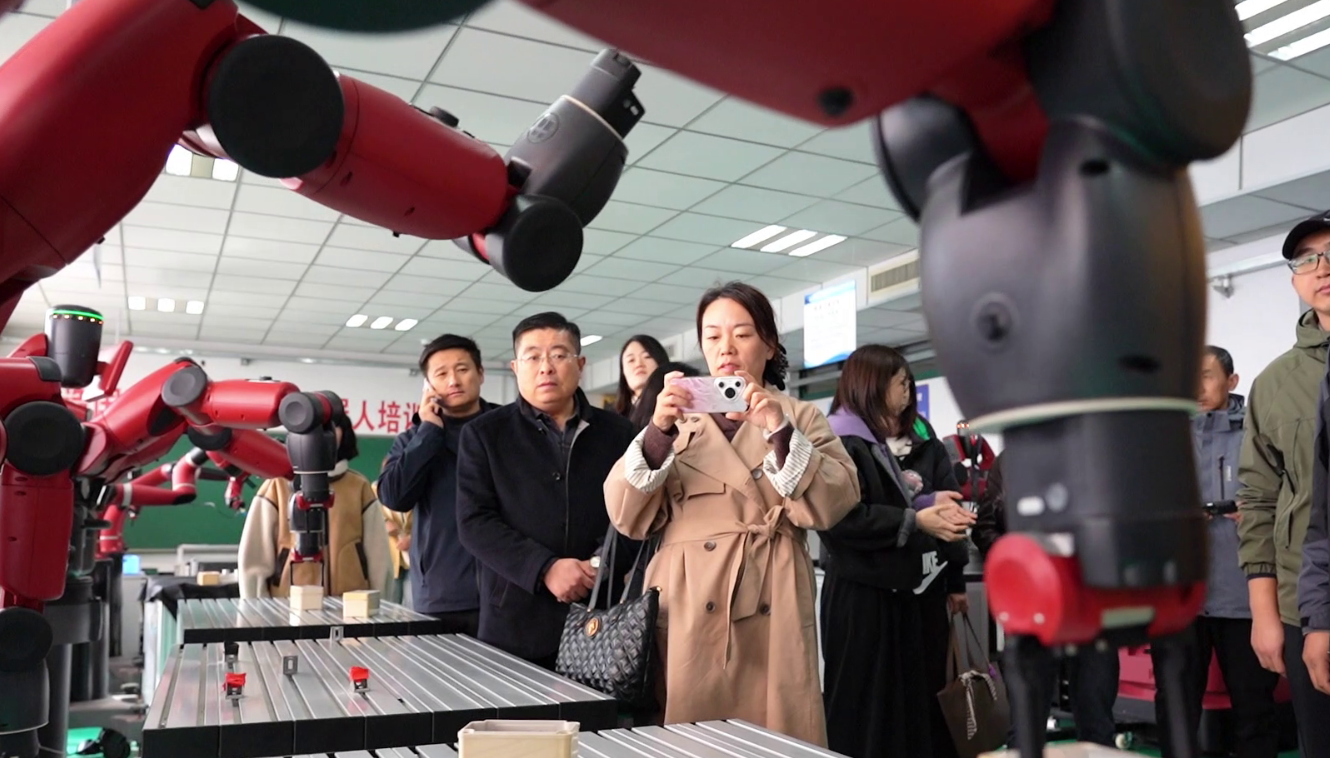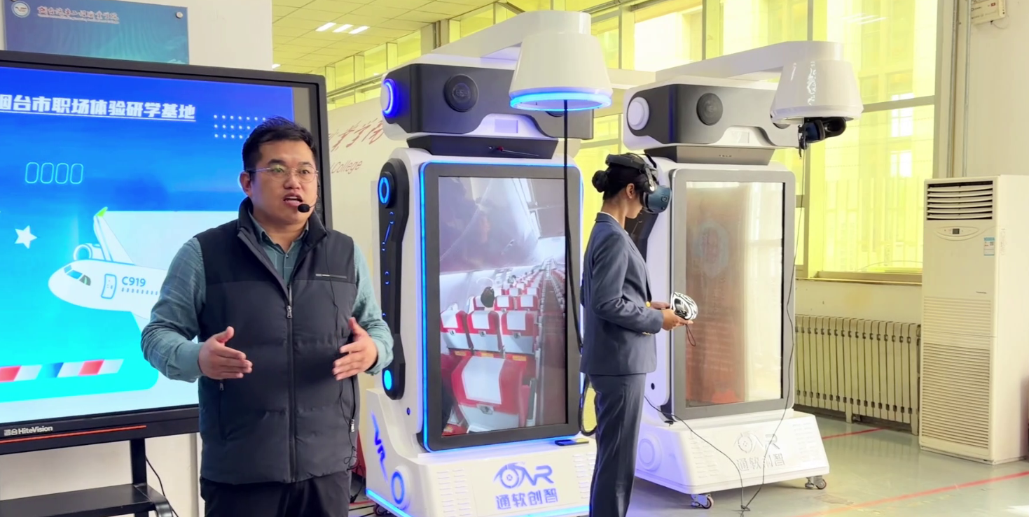 来自烟台市各区县的教育部门代表、中小学负责人等120余人走进学院研学基地,沉浸式体验了特色劳动实践课程。在D区3号楼,“我是小小乘务员”航空VR体验课程中,参会人员戴上VR设备,仿佛置身真实机舱,感受航空服务的规范流程;“我是客舱小卫士”课程则通过航空舱实体体验,讲解安全防护知识,展现职业场景的实用性。D区3号楼二楼的“我是机器人操控员”课程,让大家亲手操作机器人完成简单任务,直观感受工业科技的魅力;“瓷器&文房四宝”课程则将传统文化与劳动实践结合,传递传统技艺的精髓。